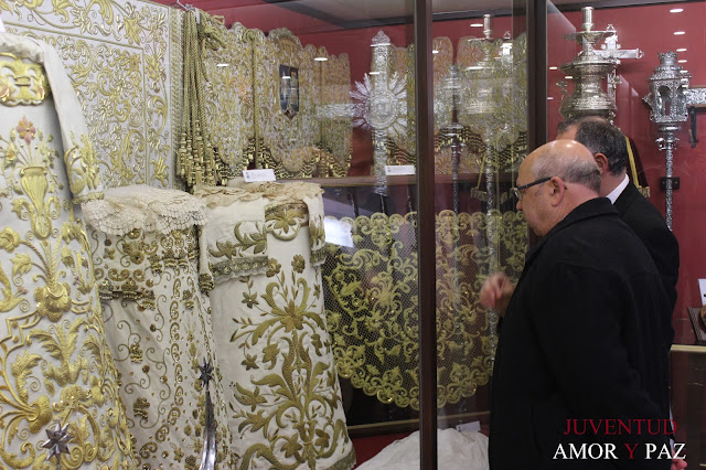 Ese mismo día, 7 de febrero, la mencionada corporación informaba que cientos de personas visitaron la sede de la misma. A las 14.00 de la tarde, ante los presentes se bendecían y presentaban al público, en su salón de actos, la nueva túnica bordada para Nuestro Padre Jesús de la Crucifixión, obra del bordador sevillano Mariano Martín Santonja, y la nueva saya para María Santísima de la Paz, realizada en el taller sevillano de bordados Santa Clara, por José Luis Sánchez Expósito, durante el transcurso de la II Jornada de Puertas Abiertas de su Casa de Hermandad, situada en la calle Viana de Lucena. Dicha bendición corrió a cargo del párroco de San Mateo, David Aguilera Malagón.