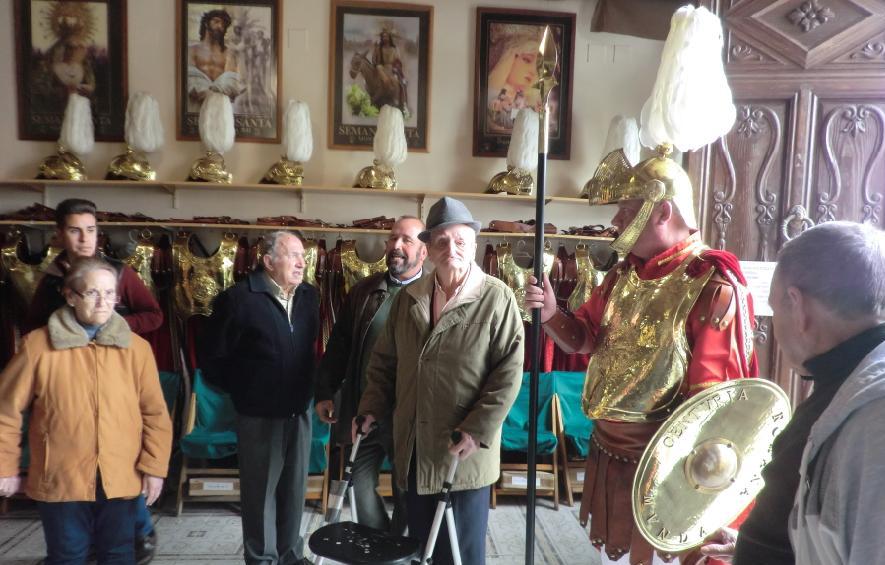 Una vez allí, les explicaron la historia de la Centuria Romana Munda, su funcionamiento, organización, así como la variedad de actos que llevan a cabo tanto a lo largo del año como en la semana más importante para ellos: la Semana Santa. Los residentes estuvieron expectantes a todo lo comentado por uno de los integrantes de dicha casa, además de hacerles todo tipo de preguntas para conocer muchos más datos sobre esta organización.