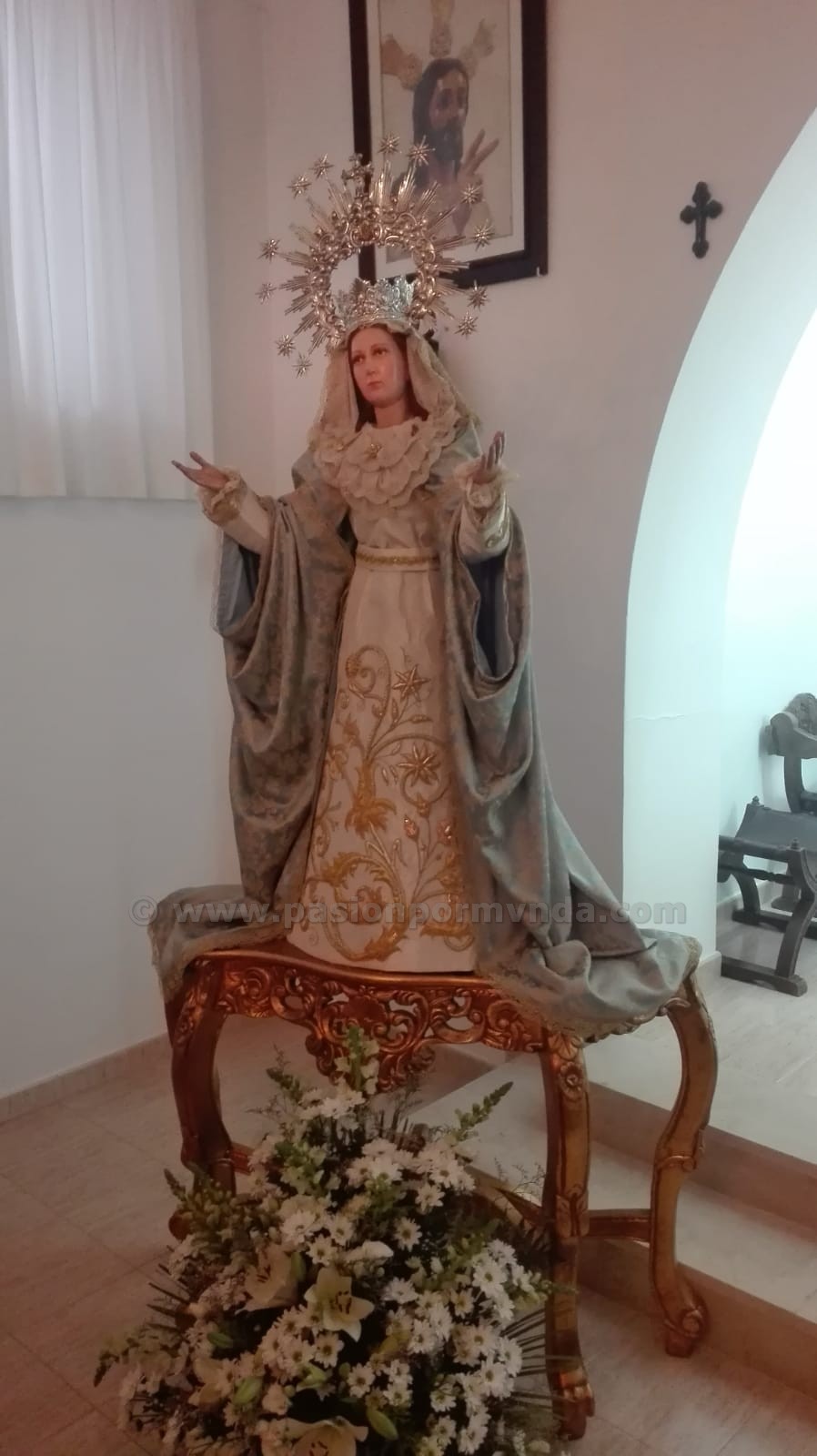 Ayer, día 6 de junio, durante la Santa Misa que se celebra todos los miércoles en la Ermita de Nuestra Señora de la Merced, tuvo lugar, a partir de las 20.00 de la tarde, en un acto recogido, la bendición e imposición de una nueva corona a Nuestra Señora de las Viñas, a cargo del sacerdote Javier Algar Ruiz, párroco de Nuestra Señora de la Asunción de Montilla y consiliario de la hermandad, la cual ha sido donada por una conocida familia montillana, muy vinculada y devota de la Santísima Virgen, luciendo así con todo su esplendor.