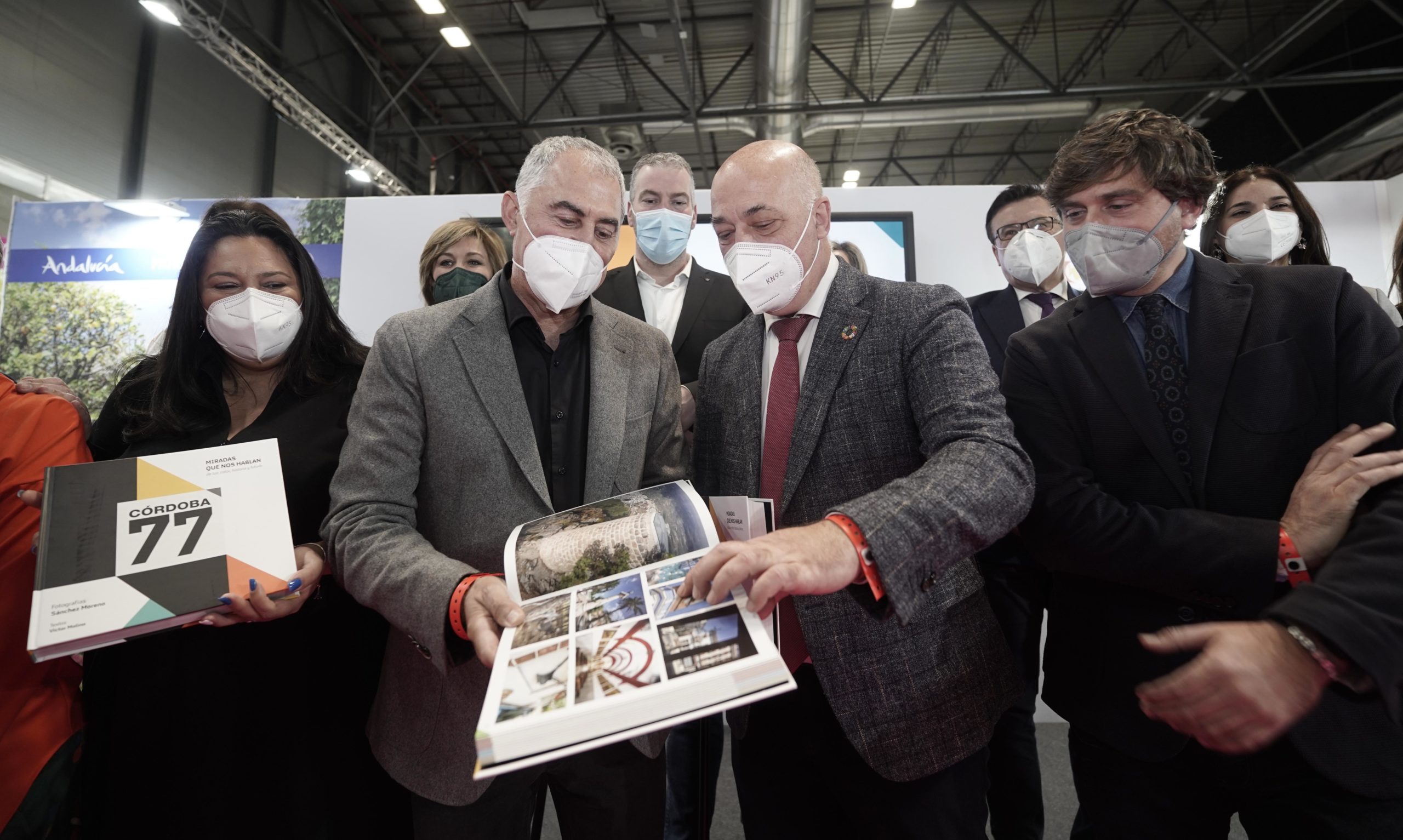El presidente de la Diputación de Córdoba pudo obsequiar al presidente del Gobierno, Pedro Sánchez, durante su visita al estand del Patronato de Turismo, con un ejemplar de esta herramienta de promoción de la provincia, además de con aceites de oliva virgen extra de la provincia y un grabado de la Red de Juderías.